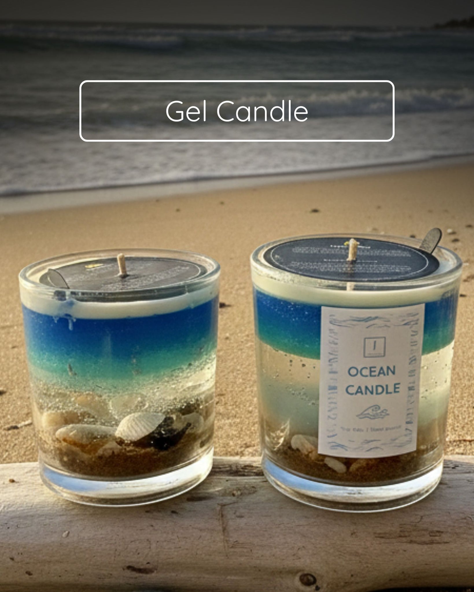 An ocean-inspired candle with floating seashells, flowers, and a personalized secret message in a miniature bottle. Perfect for gifting or creating serene, meaningful moments.