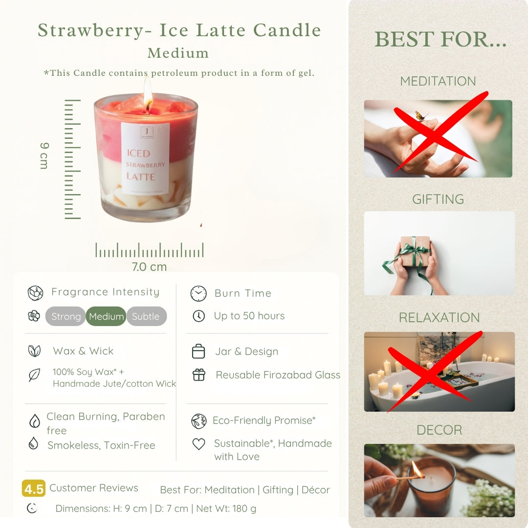 The Iced Latte Strawberry Candle by Jade's Essence blends the aroma of creamy iced latte with a fresh burst of sweet strawberry, creating a warm and uplifting ambiance.